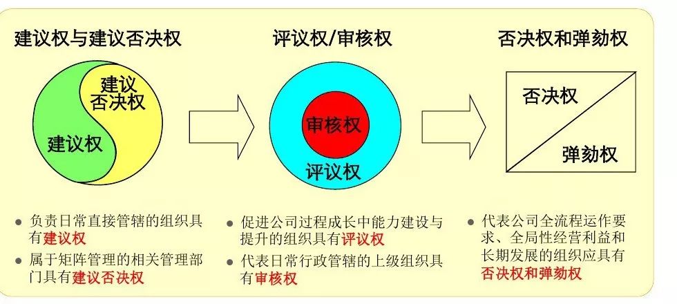 在平衡型矩阵组织里,强调横向的力量和纵向的力量基本均等,即流程化团队责任人的权力,与职能部门经理的权力基本相当,拥有一定的资源分配权和绩效考核权;
